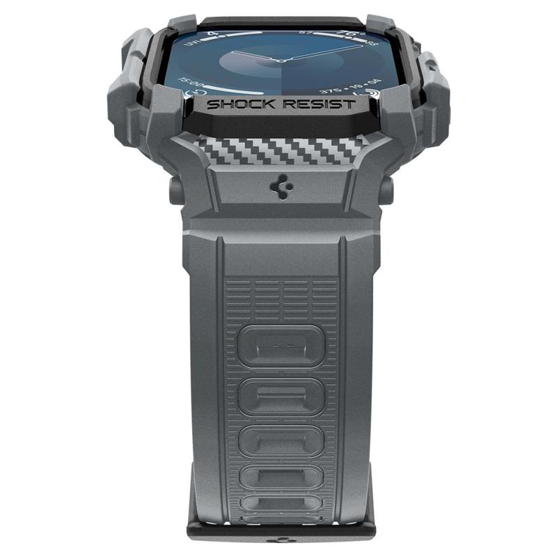 Installez ce nouveau bouclier de Spigen sur votre Apple Watch Series 11/10 et partez à l'aventure quotidienne bien préparé. La coque Rugged Armor Pro avec le bracelet est fabriquée en matériau TPU absorbant les chocs avec des détails en fibre de carbone et un design moderne et robuste, parfait pour toutes les occasions et conditions météorologiques. En plus, le bracelet flexible et réglable est doux pour la peau tandis que la coque en TPU ajustée préserve un accès facile à toutes les fonctions de votre Apple Watch Series 11/10.