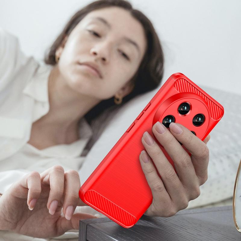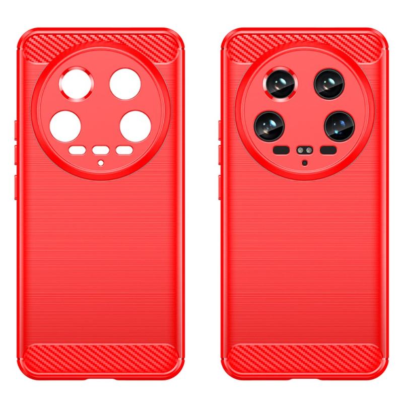 Coque Xiaomi 14 Ultra en TPU Brossé - Fibre de Carbone - Rouge