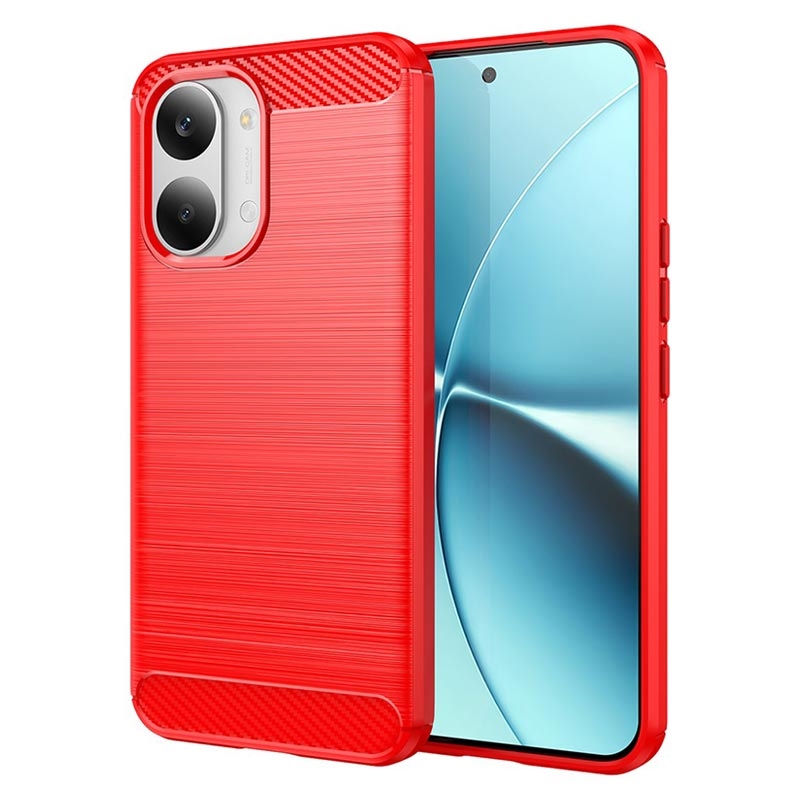 Coque Xiaomi Redmi Turbo 5 Max/Poco X8 Pro Max en TPU Brossé - Fibre de Carbone - Rouge