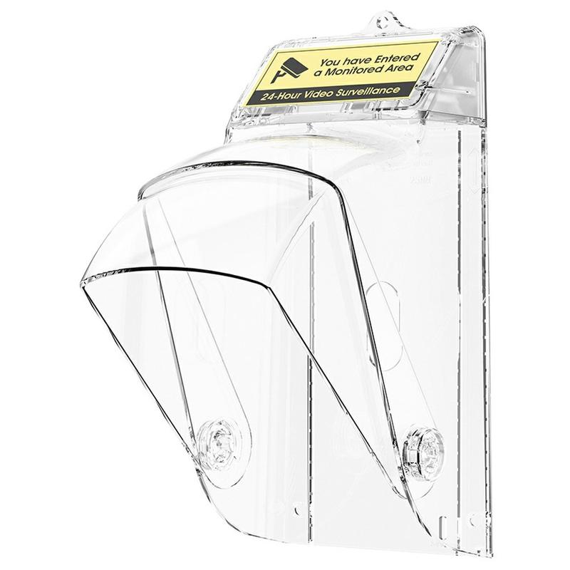La housse est dotée d'un écran de protection pivotant à 30° qui vous permet d'ajuster l'angle en fonction des conditions météorologiques. Par temps sec, il maintient une vue claire de la caméra, tandis que par temps de pluie ou de neige, il peut être tourné pour fournir une protection supplémentaire sans obstruer la fonctionnalité.