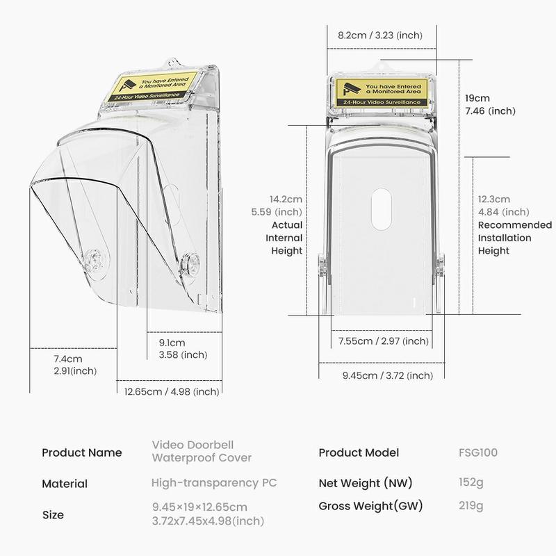 Cette housse protège efficacement votre sonnette de la pluie, de la neige et de la poussière, contribuant ainsi à prolonger la durée de vie de votre appareil et à maintenir un fonctionnement stable tout au long de l'année. Idéal pour les entrées exposées, les portails et les murs extérieurs.