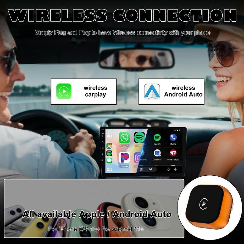 CP031-1 Adaptateur sans fil 2-en-1 CarPlay et Android Auto - Orange / Noir