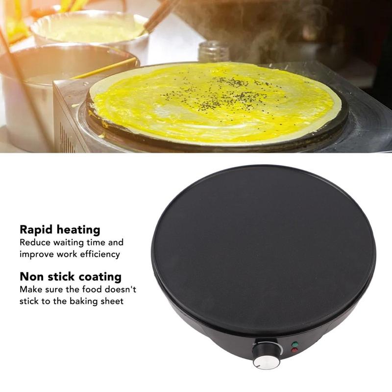 Cette crêpière électrique allie efficacité, durabilité et facilité d'utilisation. La large surface de 12 pouces vous permet de produire des crêpes de style café à la maison, tandis que le chauffage à température contrôlée assure une cuisson homogène d'un bord à l'autre. Son revêtement antiadhésif garantit un retournement en douceur et un nettoyage facile, ce qui en fait l'appareil idéal pour les ménages occupés et les installations commerciales. Le rendement énergétique et les matériaux sans BPA garantissent la sécurité, la valeur et la fiabilité au quotidien.