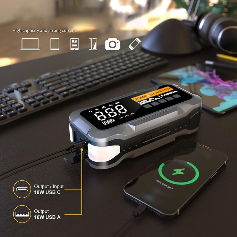 - Démarreur de secours portable avec un courant maximal de 4 000 A