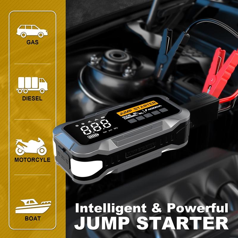 - Démarreur de secours portable avec un courant maximal de 4 000 A