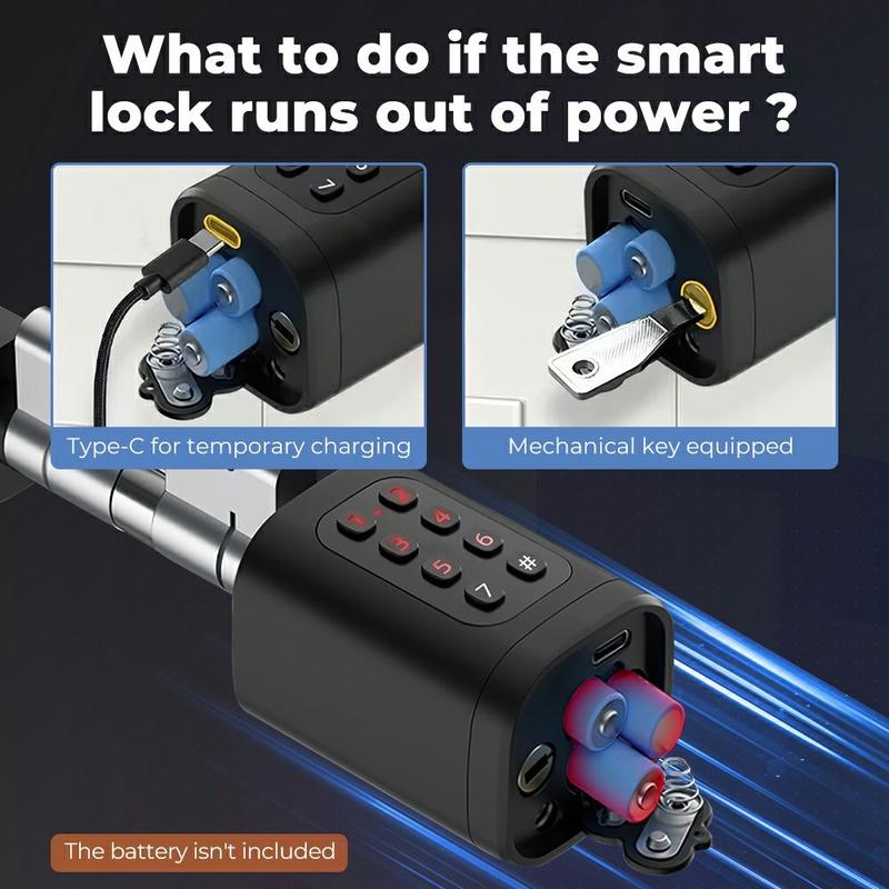 Le MS001-B-BLU fonctionne avec 3 piles AAA LR03, ce qui rend inutile toute connexion électrique fixe. L'autonomie des piles peut atteindre 12 mois en utilisation normale, ce qui simplifie l'entretien. Si les piles sont à plat, le port de recharge d'urgence Type-C intégré vous permet d'alimenter temporairement la serrure, afin que vous puissiez toujours déverrouiller la porte sans risquer de vous retrouver enfermé dehors.
