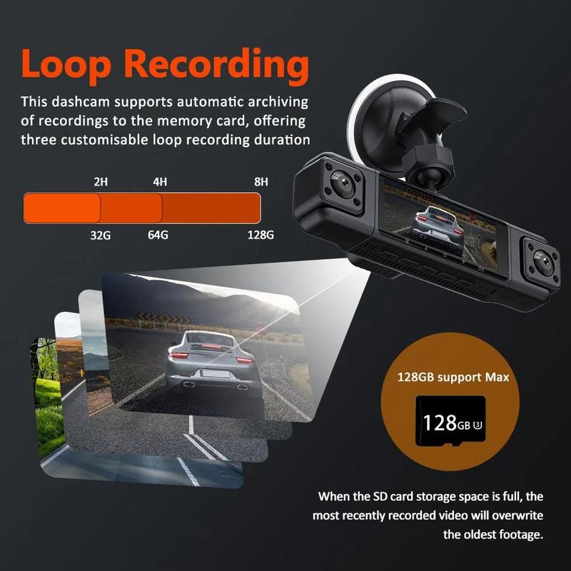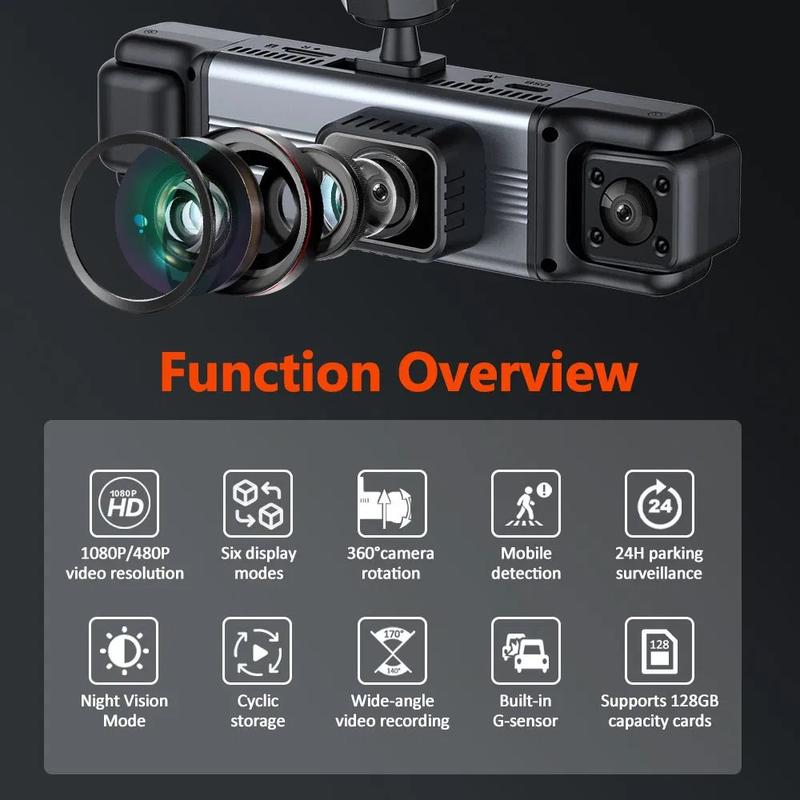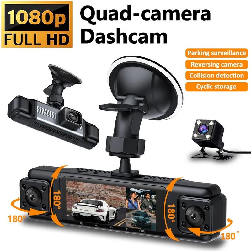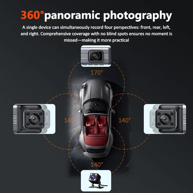 Restez en sécurité et entièrement protégé sur la route grâce à cette caméra de bord à écran IPS de 3.0 pouces et à 4 lentilles, conçue pour enregistrer votre trajet avec une clarté exceptionnelle. Dotée d'une caméra frontale 1080P et de trois objectifs latéraux et arrière 480P supplémentaires, elle offre une couverture complète pour une conduite plus sûre et plus confiante.