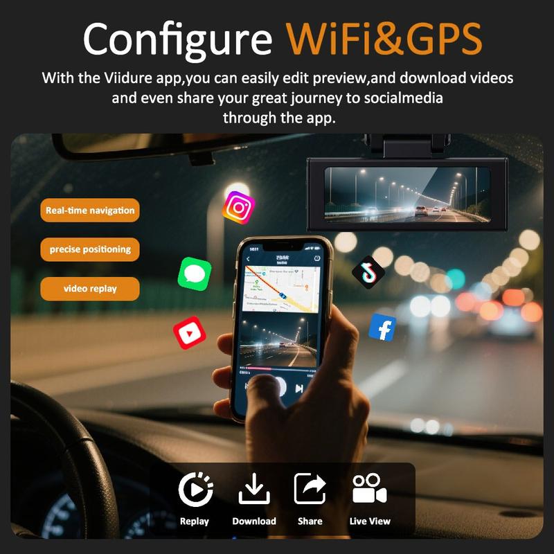 Cette caméra de tableau de bord combine un double enregistrement haute résolution, des fonctions intelligentes d'aide à la conduite et une connectivité Wi-Fi moderne dans un seul appareil compact. Qu'elle soit utilisée à des fins de sécurité, de preuve d'assurance ou de documentation de voyage, le système à double objectif 4K garantit des séquences claires et complètes à chaque fois. Avec le suivi GPS, la vision nocturne et les capteurs avancés, il offre un excellent rapport qualité-prix et une protection fiable sur la route.