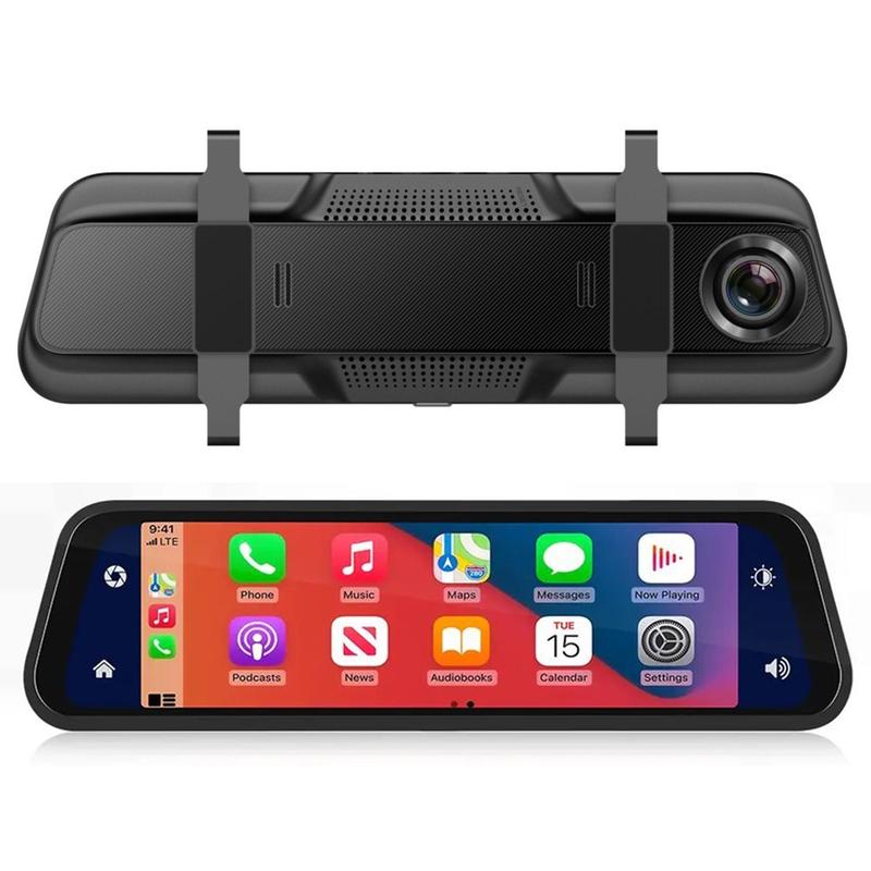 Dash Cam à écran tactile et double objectif avec CarPlay - 9.66" - Noir