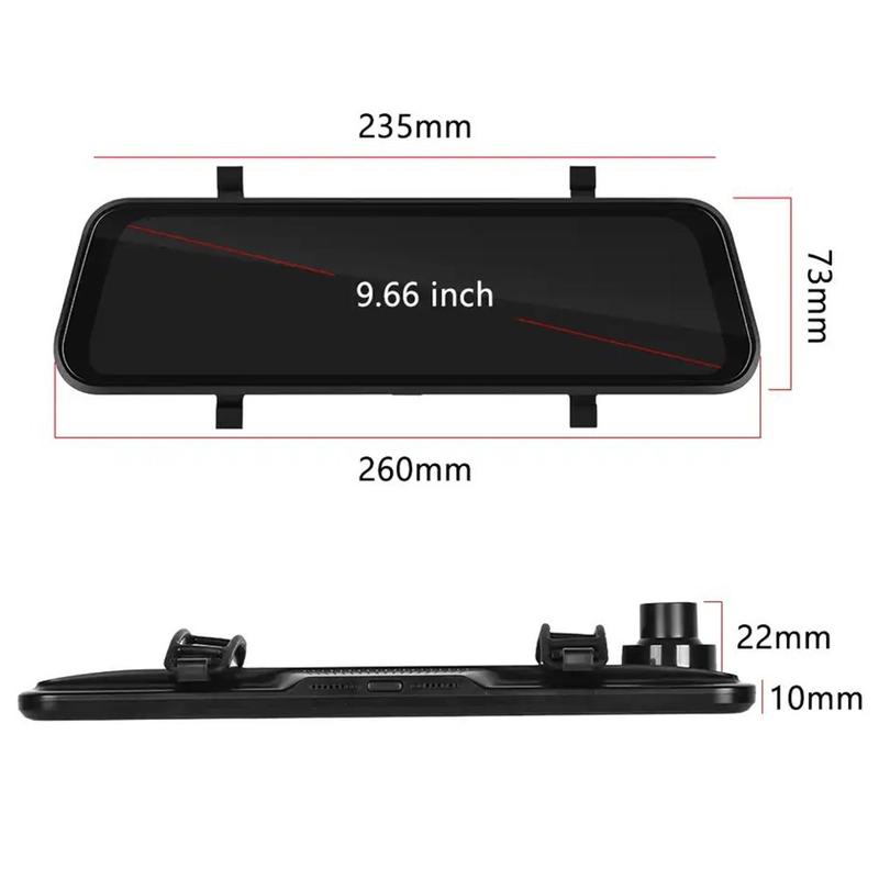 • 904 9.66" Dash Cam à écran tactile et double objectif avec CarPlay - Rétroviseur plein écran en streaming 4K et 1080P Dual Lens DVR