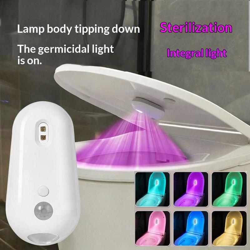 • Lampe de toilettes F21 à capteur de mouvement RGB avec stérilisation UV - Veilleuse de salle de bains rechargeable, LED multicolores, recharge via USB-C