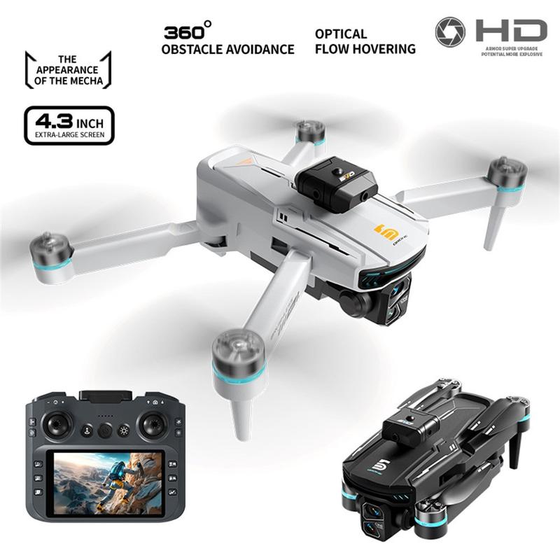 Drone intelligent Z105 à double caméra avec écran 4,3" et 3 batteries - Quadricoptère à moteur sans balais avec évitement d'obstacles