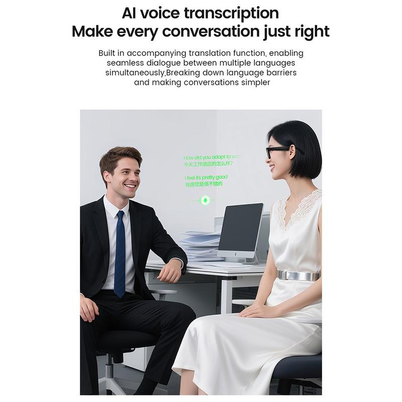 Les lunettes intelligentes comme la E02 utilisent la reconnaissance d'images par l'IA et la traduction en temps réel pour combler instantanément les lacunes en matière de communication. Son double rôle de lunettes-caméra et d'appareil audio sans fil en fait un gadget futuriste tout-en-un pour la productivité et les loisirs.