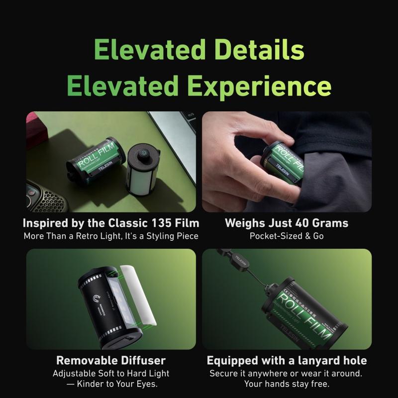 Si vous recherchez une lampe vidéo légère et polyvalente pour les caméras DJI Osmo, les smartphones et les configurations de tournage compactes, la lampe d'appoint TELESIN MagFilm est un excellent choix. Elle offre un éclairage réglable, un rendu des couleurs précis et une grande portabilité dans un format compact conçu pour les prises de vue quotidiennes.