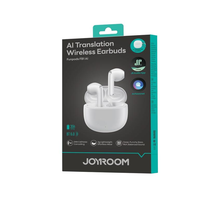 Écouteurs TWS Joyroom JR-FB1 avec traduction IA - Bluetooth 6.0, réduction du bruit DNN, faible latence de 65 ms, haut-parleurs de 13 mm, autonomie totale de 35 heures, IP54