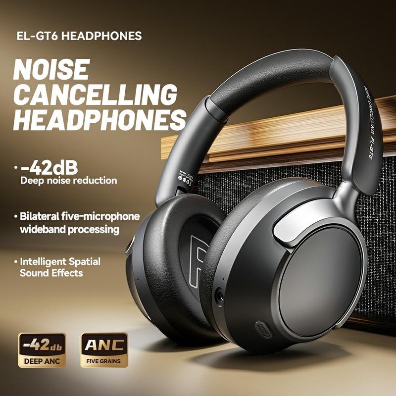 EL-GT6 Casque supra-auriculaire sans fil ANC / Casque de jeu avec Bluetooth 6.0, son HiFi, faible latence