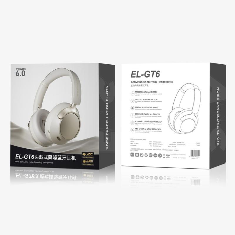 Le casque sans fil EL-GT6 ANC à réduction de bruit offre un son immersif et un confort durable aux joueurs, aux mélomanes et aux professionnels. Doté de la technologie avancée ANC 3.0 avec réduction adaptative du bruit, il bloque les distractions et améliore votre expérience d'écoute. Équipé de haut-parleurs dynamiques de 40 mm et de membranes composites en microcristal, il produit des basses profondes, des médiums clairs et des aigus nets pour une qualité sonore HiFi. Avec la connectivité Bluetooth 6.0, une faible latence et jusqu'à 120 heures d'autonomie, ce casque supra-auriculaire allie performance, confort et endurance dans un ensemble haut de gamme.