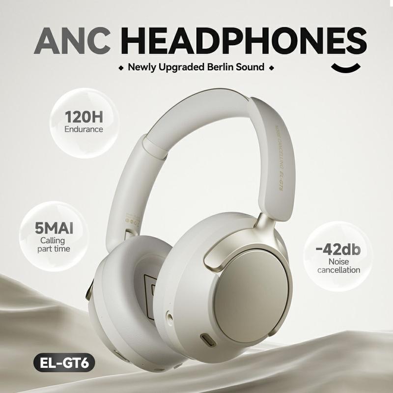 • EL-GT6 Casque supra-auriculaire sans fil ANC / Casque de jeu avec Bluetooth 6.0, son HiFi, faible latence