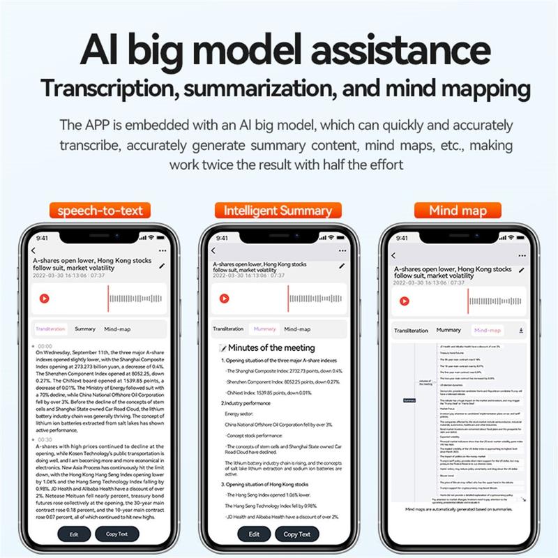 - Transcription assistée par ordinateur : Connectez-vous à l'AIREC-APP via Bluetooth pour transcrire et traduire la parole dans 188 langues, grâce à ChatGPT.
