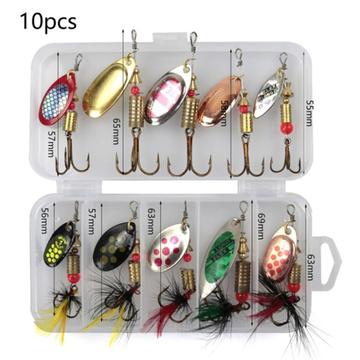 Cet ensemble de leurres spinning de 10 pièces offre un excellent rapport qualité-prix avec une gamme de leurres efficaces, de style bionique, emballés dans une boîte de rangement compacte. Les paillettes rotatives, les hameçons triples robustes et la construction métallique durable en font un choix fiable pour améliorer le succès des prises, tout en gardant votre matériel organisé et facile à transporter.