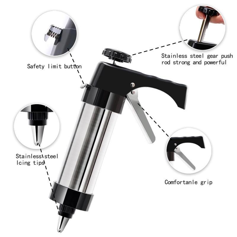 Cet ensemble de pistolets à biscuits en acier inoxydable est un outil de pâtisserie pratique et créatif conçu pour vous aider à façonner des biscuits et à décorer des desserts avec précision et facilité. Grâce aux multiples disques et embouts inclus, vous pouvez expérimenter différents motifs et styles décoratifs pour les biscuits, les gâteaux et les pâtisseries. Durable, facile à utiliser et à nettoyer, c'est un complément fiable à la cuisine de tout pâtissier.