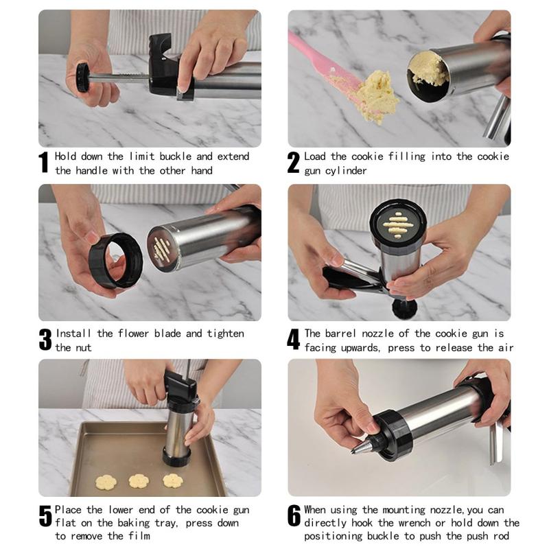 Ensemble de pistolets de pressage de biscuits en acier inoxydable - 8 buses et 13 disques