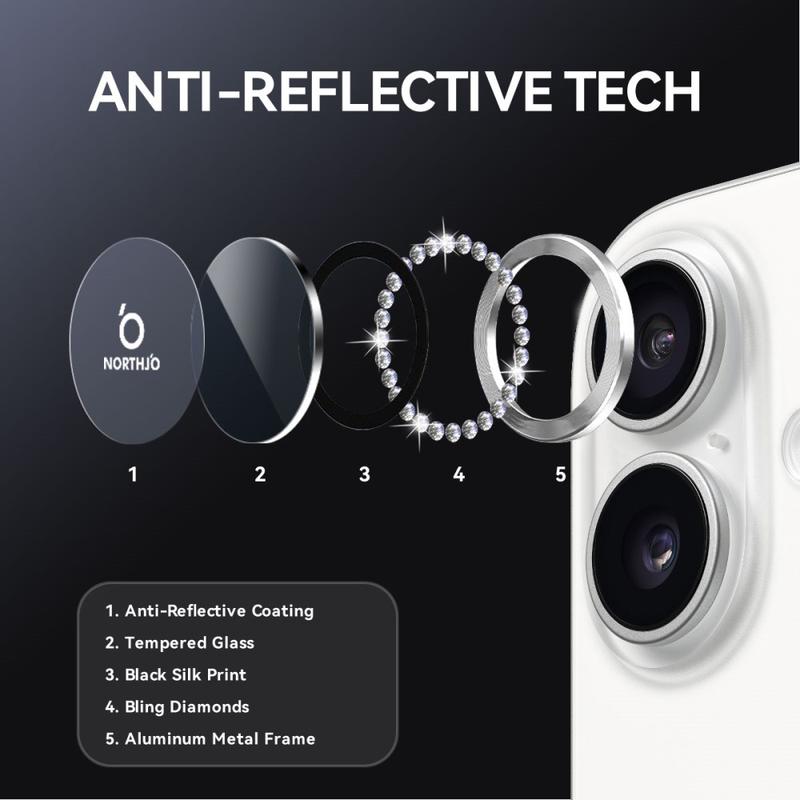 Ajoutez de l'éclat et de la protection à votre iPhone 17 avec la protection de l'objectif de l'appareil photo NORTHJO. Conçu avec des strass scintillants et un verre trempé taillé avec précision, il protège l'objectif de l'appareil photo des rayures, de la poussière et des chocs tout en ajoutant une touche d'élégance et de luxe.