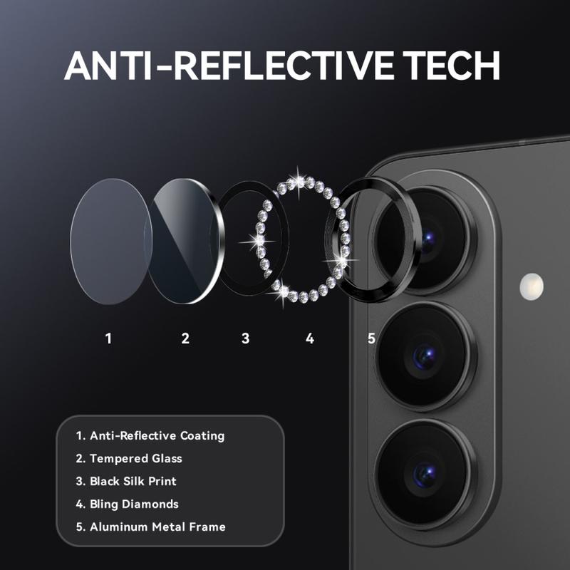 Ajoutez de l'éclat et de la protection à votre Samsung Galaxy S26 avec la protection de l'objectif de l'appareil photo NORTHJO. Conçu avec des strass scintillants et un verre trempé taillé avec précision, il protège l'objectif de l'appareil photo des rayures, de la poussière et des chocs tout en ajoutant une touche d'élégance et de luxe.