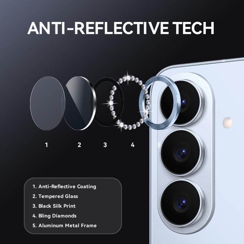 Ajoutez de l'éclat et de la protection à votre Samsung Galaxy S26 avec la protection de l'objectif de l'appareil photo NORTHJO. Conçu avec des strass scintillants et un verre trempé taillé avec précision, il protège l'objectif de l'appareil photo des rayures, de la poussière et des chocs tout en ajoutant une touche d'élégance et de luxe.