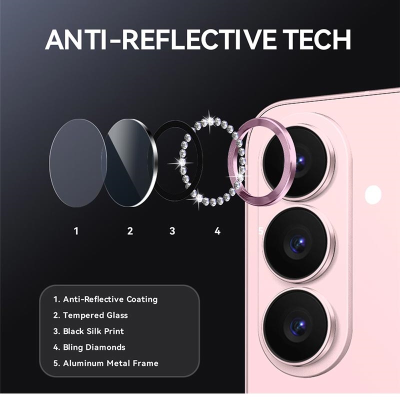 Ajoutez de l'éclat et de la protection à votre Samsung Galaxy S26 avec la protection de l'objectif de l'appareil photo NORTHJO. Conçu avec des strass scintillants et un verre trempé taillé avec précision, il protège l'objectif de l'appareil photo des rayures, de la poussière et des chocs tout en ajoutant une touche d'élégance et de luxe.