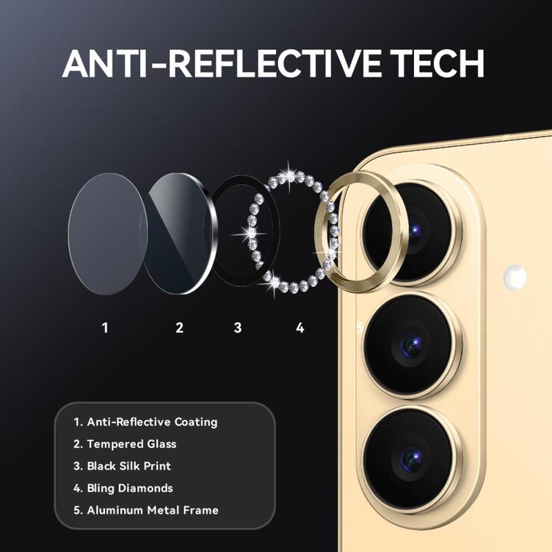 Ajoutez de l'éclat et de la protection à votre Samsung Galaxy S26 avec la protection de l'objectif de l'appareil photo NORTHJO. Conçu avec des strass scintillants et un verre trempé taillé avec précision, il protège l'objectif de l'appareil photo des rayures, de la poussière et des chocs tout en ajoutant une touche d'élégance et de luxe.