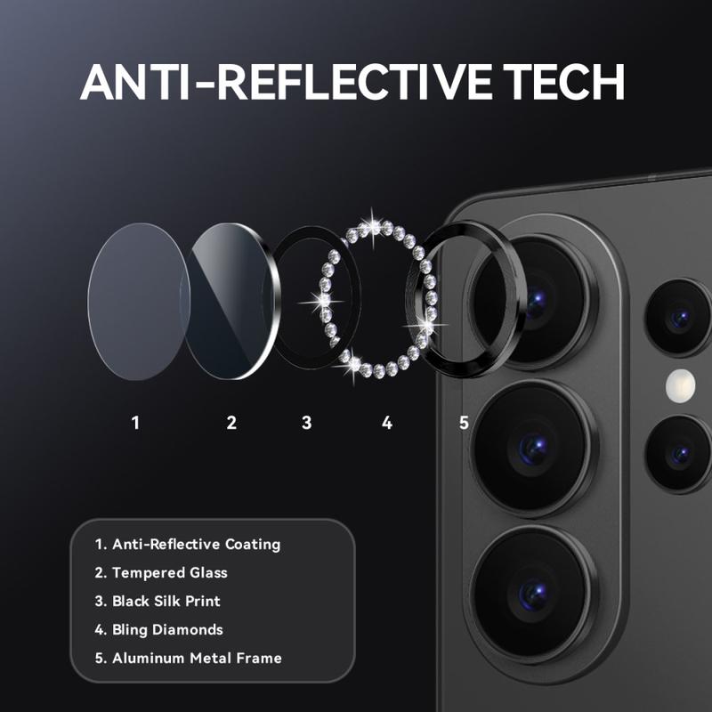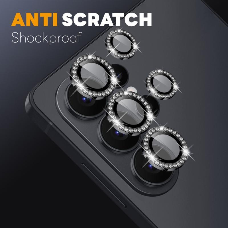 Ajoutez de l'éclat et de la protection à votre Samsung Galaxy S26 Ultra avec la protection de l'objectif de l'appareil photo NORTHJO. Conçu avec des strass scintillants et un verre trempé taillé avec précision, il protège l'objectif de l'appareil photo des rayures, de la poussière et des chocs tout en ajoutant une touche d'élégance et de luxe.