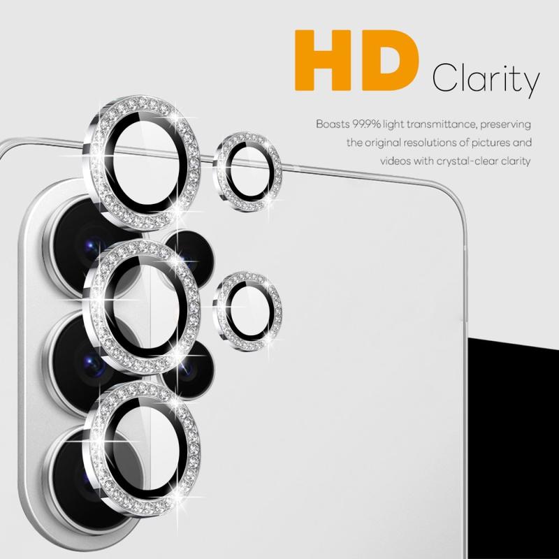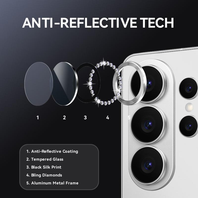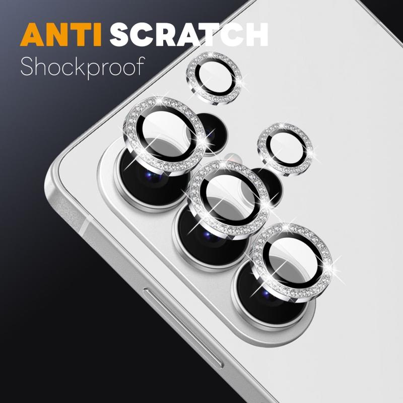 Ajoutez de l'éclat et de la protection à votre Samsung Galaxy S26 Ultra avec la protection de l'objectif de l'appareil photo NORTHJO. Conçu avec des strass scintillants et un verre trempé taillé avec précision, il protège l'objectif de l'appareil photo des rayures, de la poussière et des chocs tout en ajoutant une touche d'élégance et de luxe.