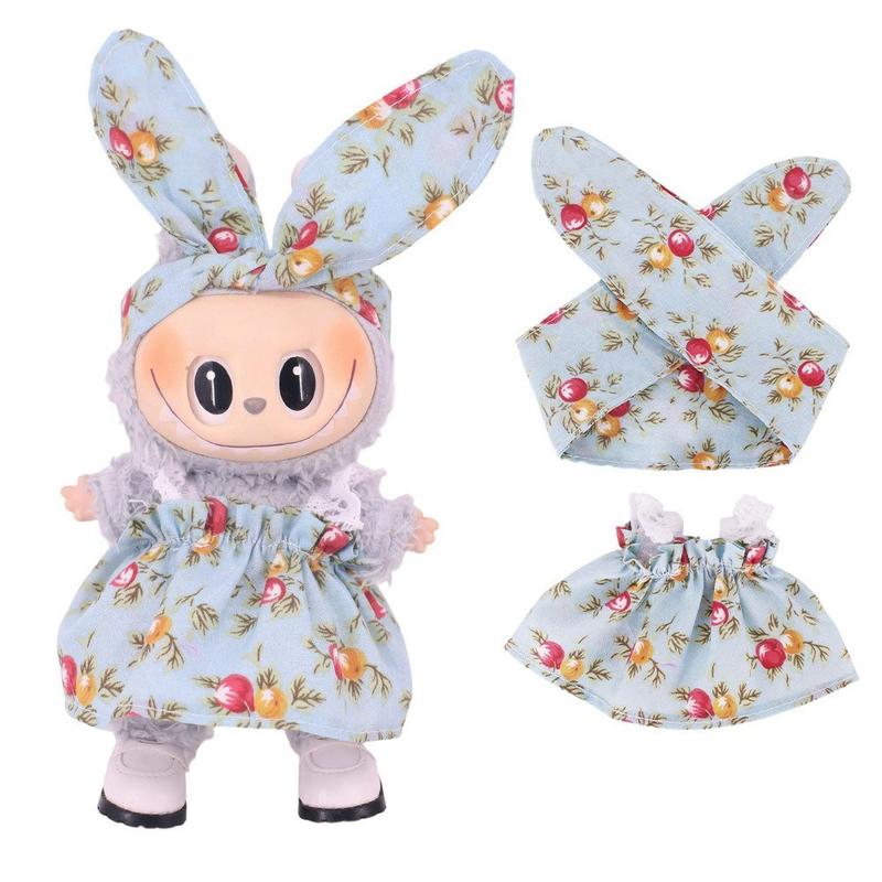 Ensemble robe et bandeau pour mini-figure Labubu 17cm - Bleu