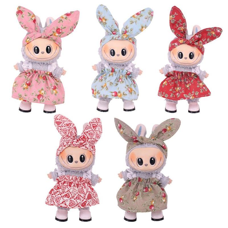 • Ensemble robe et bandeau pour mini-figure Labubu de 17cm - Tenue de fête sur mesure, tissu doux, design facile à habiller