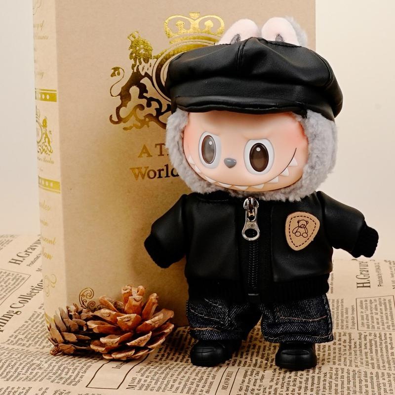 • Ensemble vintage style aviateur pour poupée Labubu 17cm - 5Pcs Changeable Costume avec T-Shirt, Veste, Jeans, Chapeau & Chaussures pour Figurines Gen 1 / 2 / 3