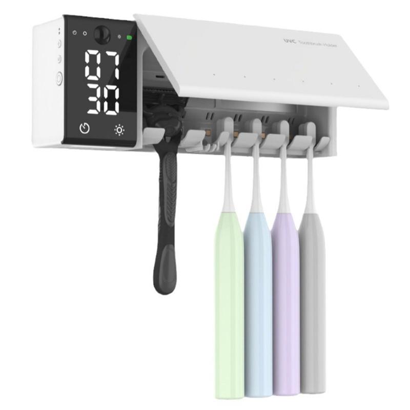• ES909 Désinfectant UV intelligent pour brosse à dents - Support mural de séchage et de stérilisation avec horloge LED, minuterie et installation sans perçage