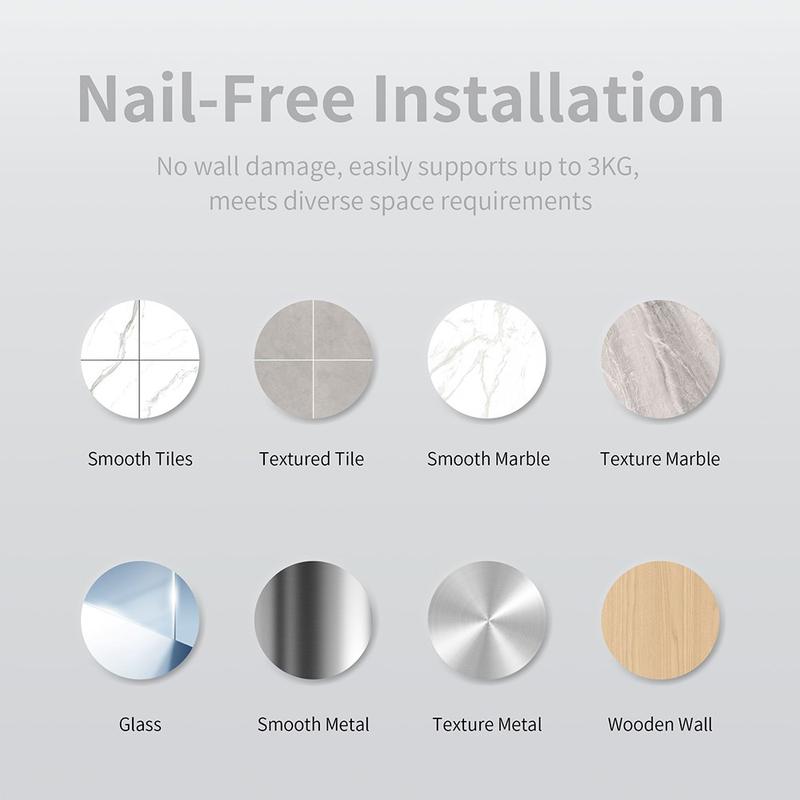 - Installation murale facile - La fixation adhésive sans perçage permet de conserver les murs intacts et de faciliter l'installation.