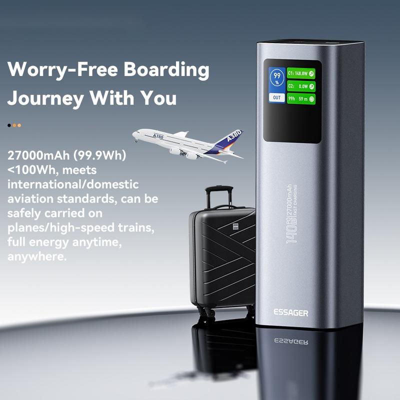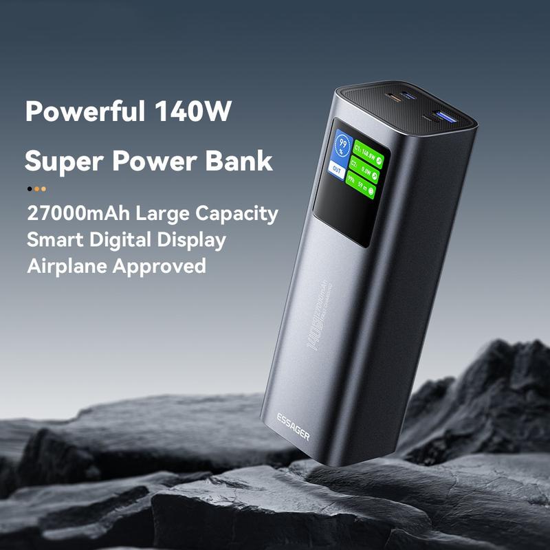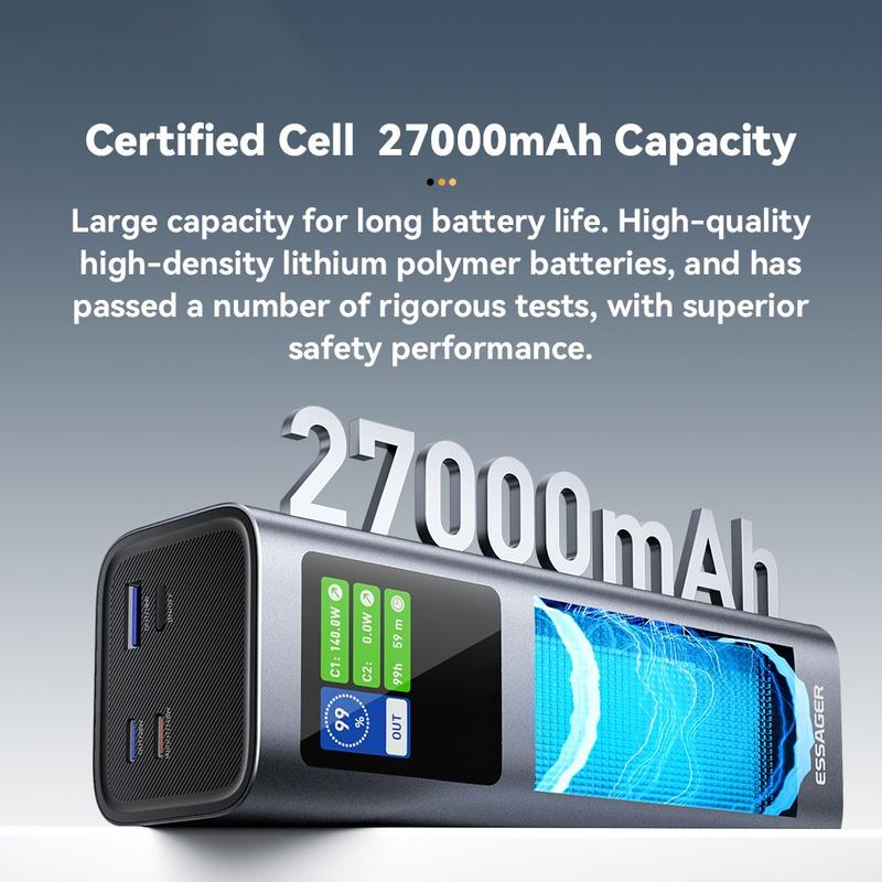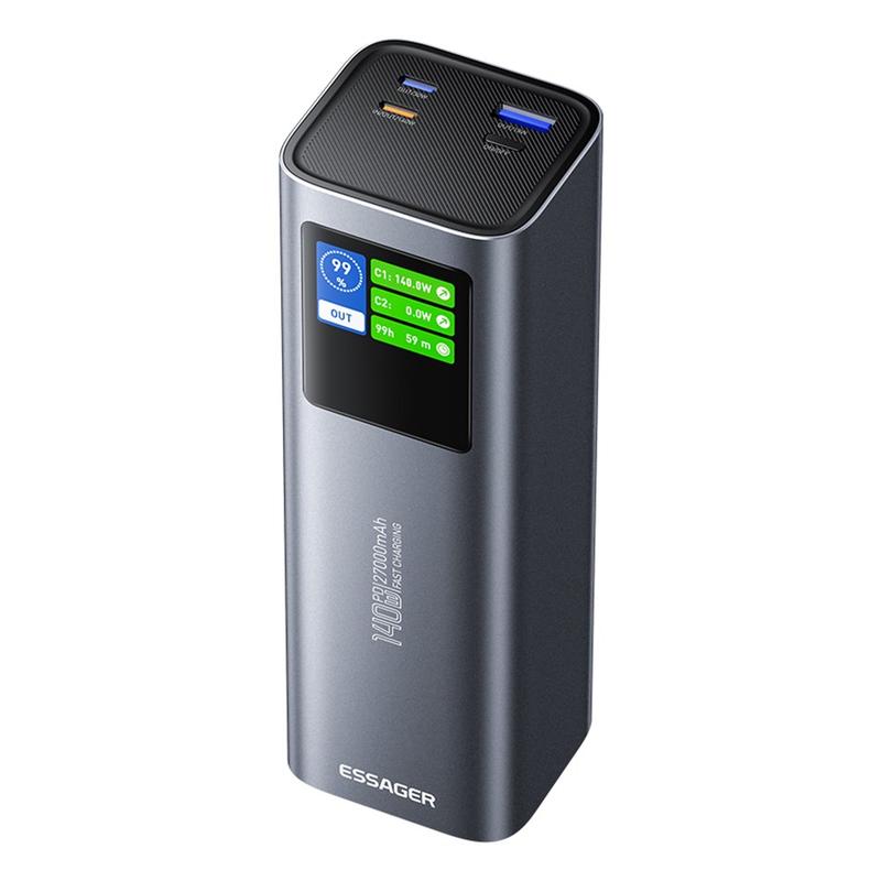 Essager EDY140W-CH0G-Z 27000mAh Power Bank - Charge rapide bidirectionnelle 140 W, triple sortie, puce intelligente avec écran couleur TFT