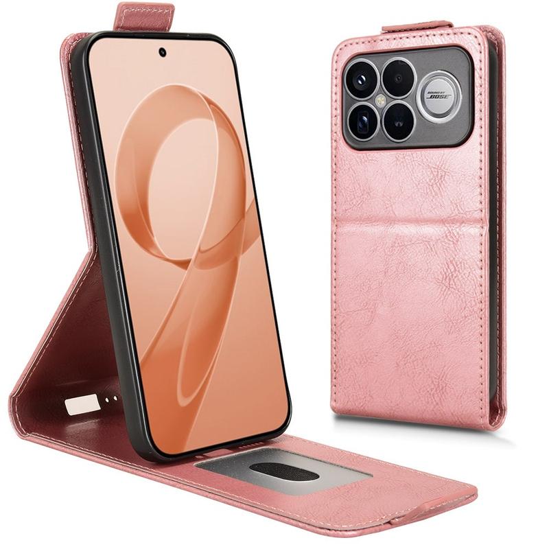 Étui à rabat vertical Xiaomi Redmi K90 Pro Max/Poco F8 Ultra avec support - Rose Doré