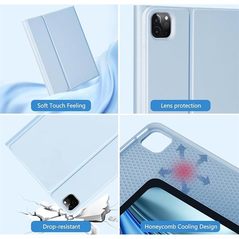 Améliorez votre iPad Air 13 2026/2025/2024, iPad Pro 12.9 2022/2021/2020/2018 avec l'étui clavier Bluetooth, un accessoire 2-en-1 multifonctionnel qui allie protection, productivité et style. Fabriqué en polyuréthane de première qualité, cet étui élégant offre une protection complète contre les rayures, les chocs et les empreintes digitales, tout en conservant un aspect professionnel. Le clavier Bluetooth se connecte sans fil pour une frappe fluide et réactive, tandis que le pavé tactile intégré prend en charge le contrôle multi-gestes pour une navigation sans effort. Le clavier rétroéclairé vous permet de taper confortablement même dans des environnements peu éclairés. Le support réglable intégré offre un angle de vue ergonomique, ce qui le rend parfait pour la saisie, la lecture en continu ou la lecture. Conçu pour les affaires, les voyages ou l'usage quotidien, cet étui-clavier transforme votre tablette en station de travail portable.