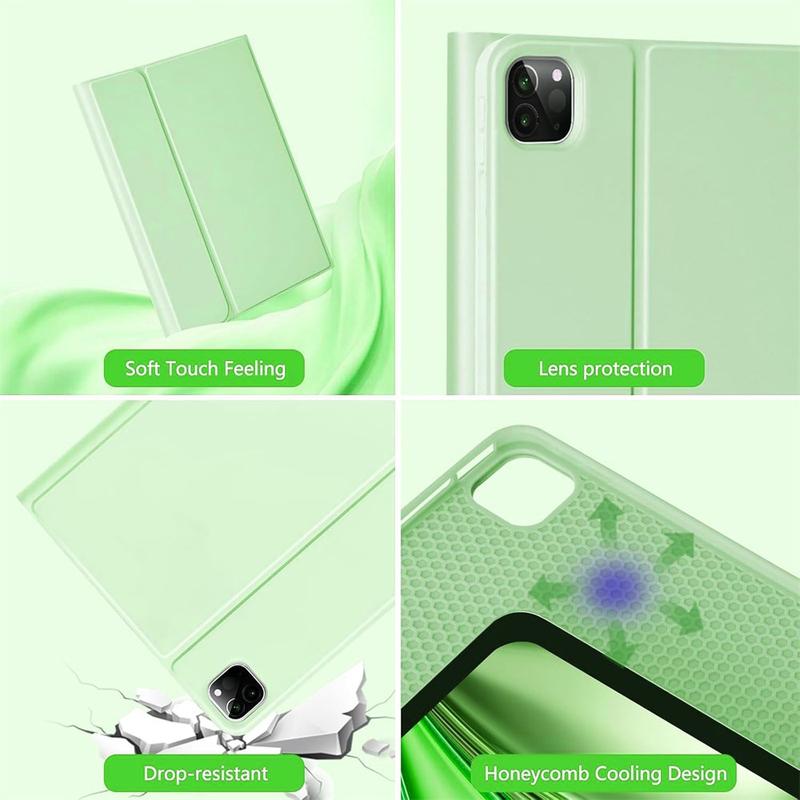 Améliorez votre iPad Air 13 2026/2025/2024, iPad Pro 12.9 2022/2021/2020/2018 avec l'étui clavier Bluetooth, un accessoire 2-en-1 multifonctionnel qui allie protection, productivité et style. Fabriqué en polyuréthane de première qualité, cet étui élégant offre une protection complète contre les rayures, les chocs et les empreintes digitales, tout en conservant un aspect professionnel. Le clavier Bluetooth se connecte sans fil pour une frappe fluide et réactive, tandis que le pavé tactile intégré prend en charge le contrôle multi-gestes pour une navigation sans effort. Le clavier rétroéclairé vous permet de taper confortablement même dans des environnements peu éclairés. Le support réglable intégré offre un angle de vue ergonomique, ce qui le rend parfait pour la saisie, la lecture en continu ou la lecture. Conçu pour les affaires, les voyages ou l'usage quotidien, cet étui-clavier transforme votre tablette en station de travail portable.