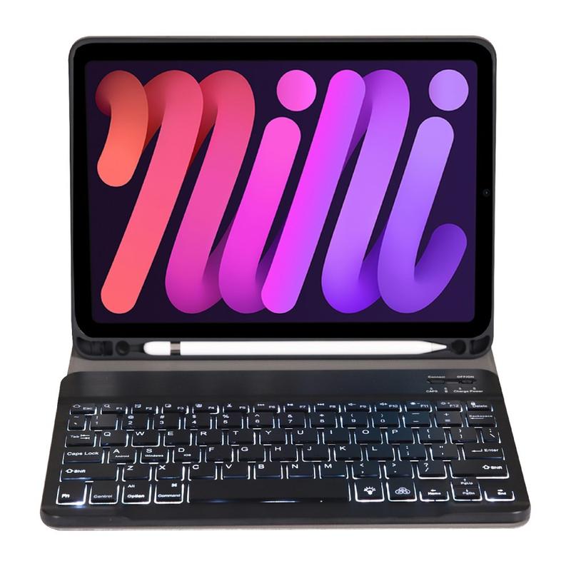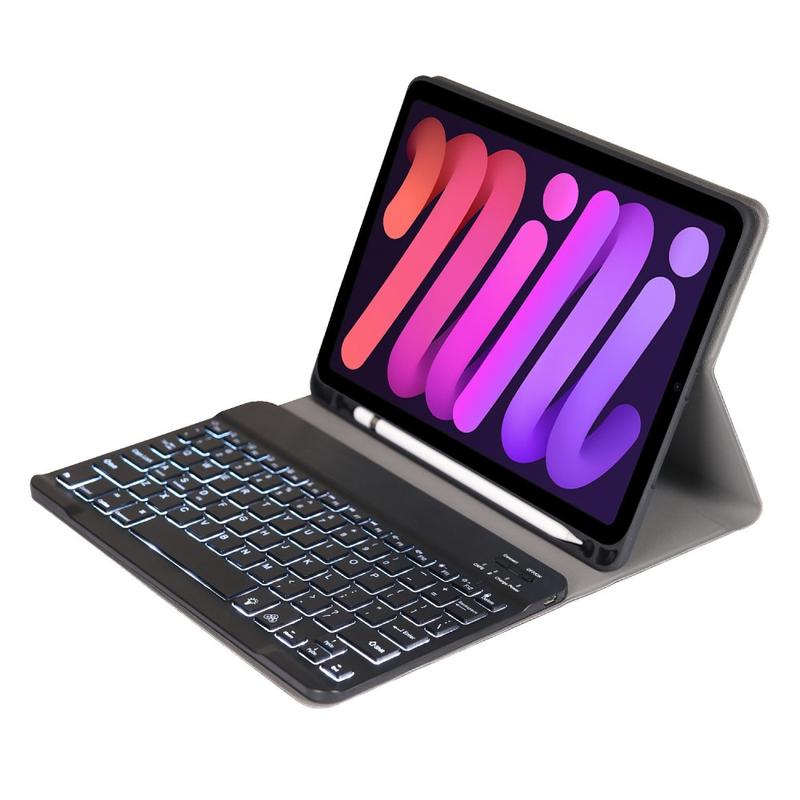 iPad Mini (2021), iPad Mini (2024) étui-clavier Bluetooth avec rétro-éclairage, pavé tactile et support - Disposition de clavier US