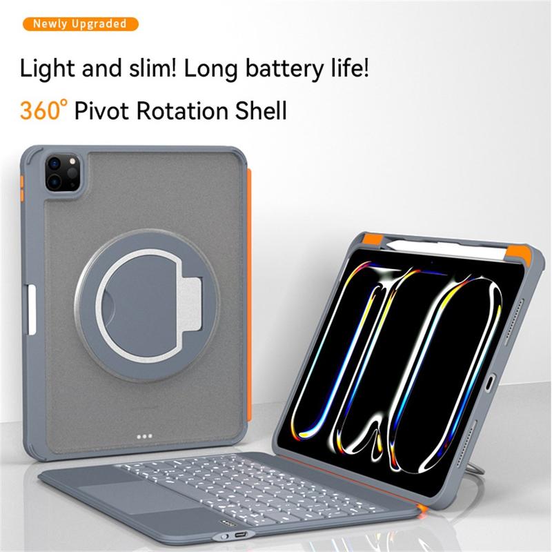TU3607 Étui clavier magnétique rétroéclairé avec support pivotant à 360° pour iPad (2025), iPad (2022), iPad Air 11 (2024), iPad Air 11 (2025), iPad Pro 11 (2022), iPad Pro 11 (2021), iPad Pro 11 (2020), iPad Pro 11 (2018), iPad Air (2022), iPad Air (2020) - Étui intelligent détachable Bluetooth 5.3