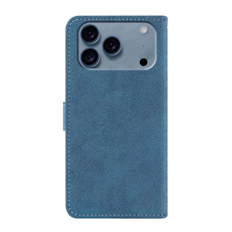 Étui élégant et rétro iPhone 17 Pro Max avec porte-cartes rotatif et fonction de support - Bleu