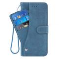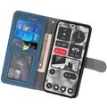 Étui élégant et rétro iPhone 17 Pro avec porte-cartes rotatif et fonction de support - Bleu