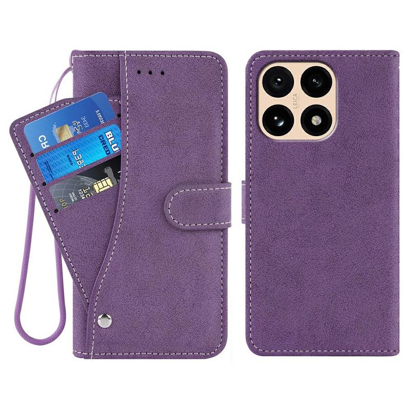 Étui élégant et rétro Xiaomi 15T avec porte-cartes rotatif et fonction de support - Violet
