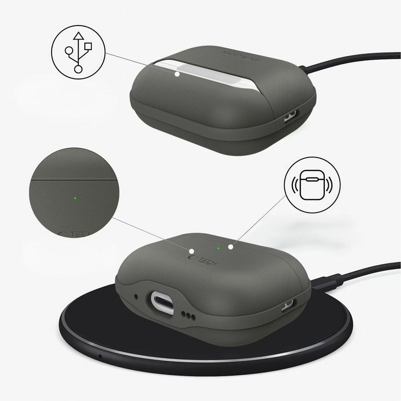 Étui en cuir AirPods Pro 3 Tech-Protect NaturalFit - Vert olive