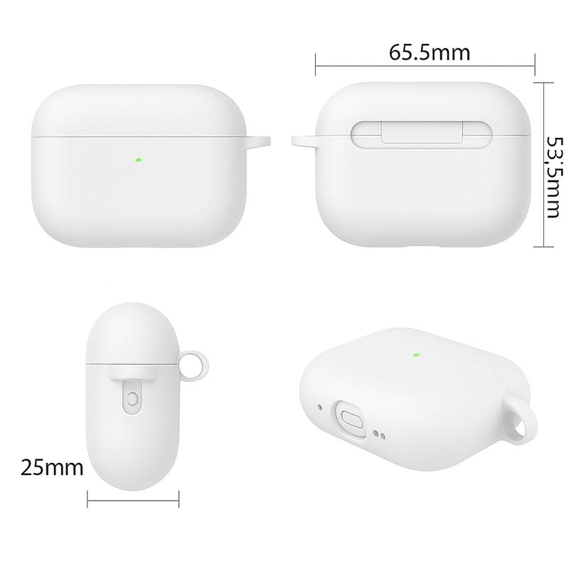 - Spécifications - Matériau : Silicone | Compatibilité : AirPods Pro 3 | Accessoires : Étui + Mousqueton + Stylo de nettoyage.