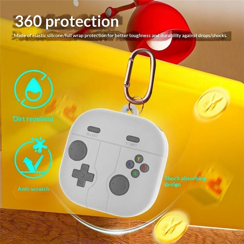 Protégez vos Samsung Galaxy Buds 4 et Galaxy Buds 4 Pro dans un style rétro amusant grâce à cet étui en silicone inspiré des manettes de jeu. Conçu pour un usage quotidien, il offre une protection à 360 degrés pour protéger votre boîtier de recharge contre les rayures, les éraflures et les chutes mineures, tout en maintenant le couvercle en place et en facilitant la manipulation du boîtier. Le silicone liquide est doux au toucher et améliore la prise en main, ce qui réduit le risque que le boîtier des écouteurs glisse de vos poches ou de vos mains.